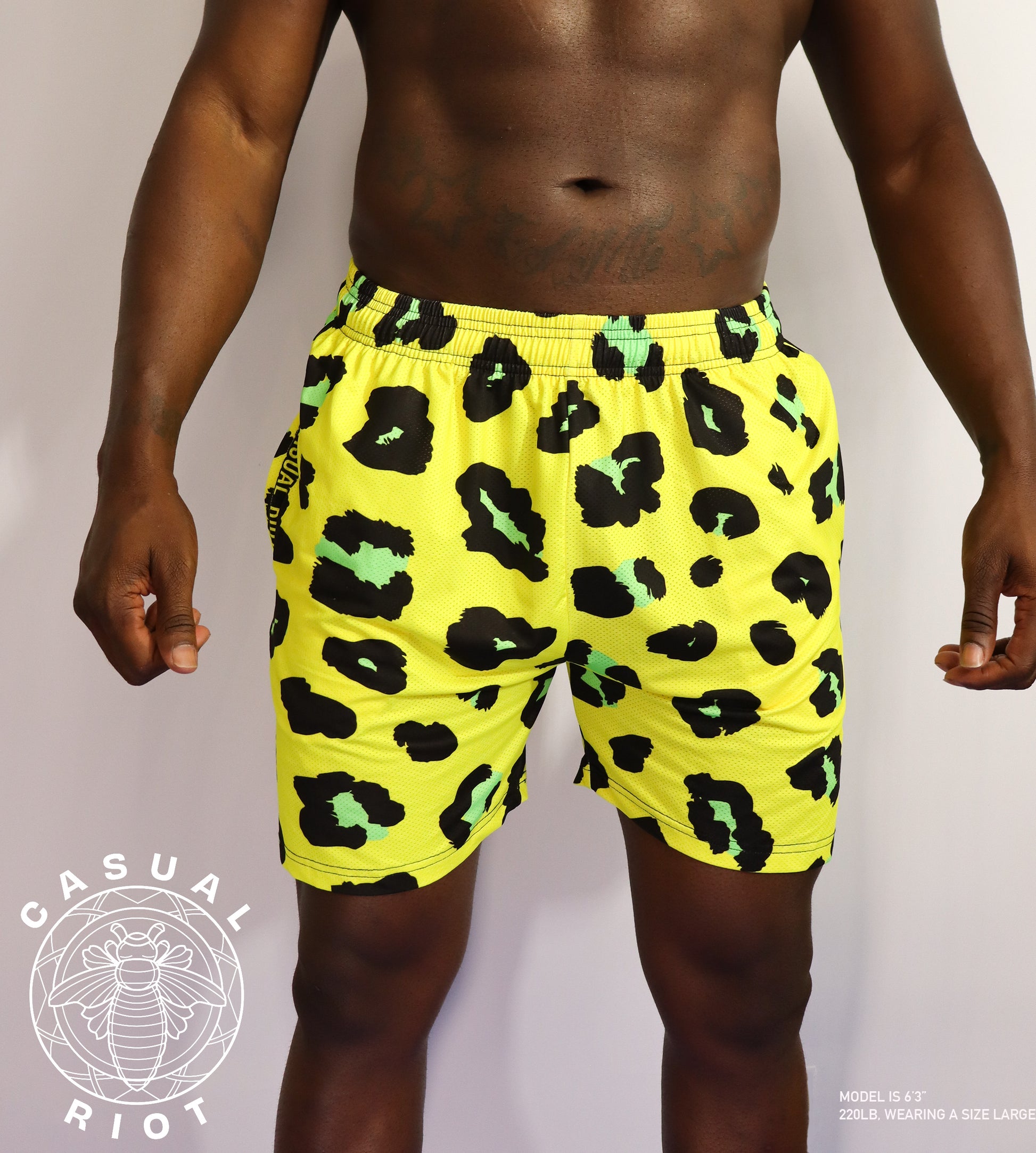 The Icon Shorts are the newest shorts to join the Riot. They can be compared, in fit, to the Basic Mesh Shorts. This mesh is soft, silky and has a comfort waistband. With a 6" inseam, two zipper-equipped front pockets and gold finishes, these shorts are as pleasing to wear as they are to the eye.