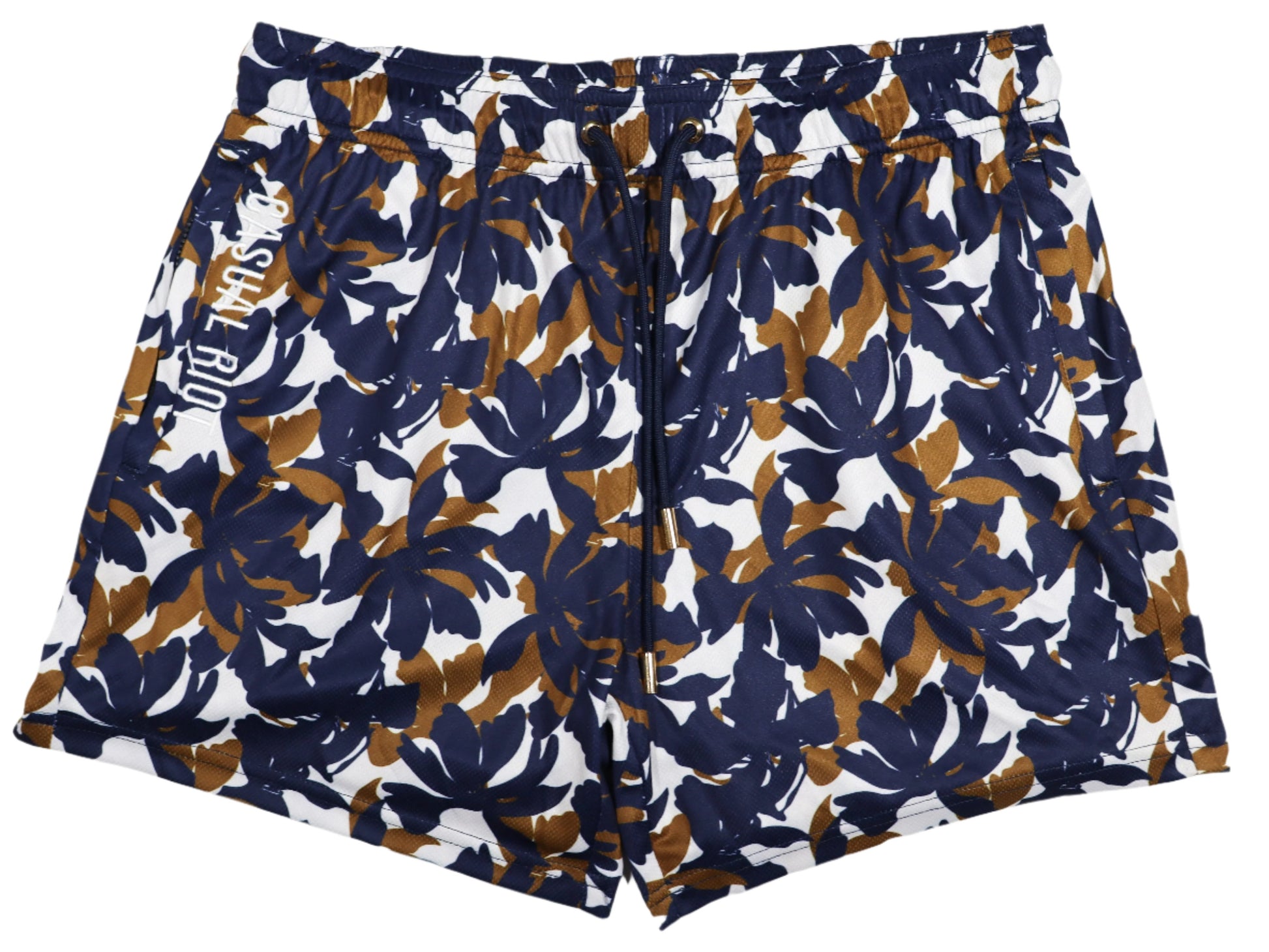 PRFKT 4" SHORTS- BLUE/BROWN PALM CAMO