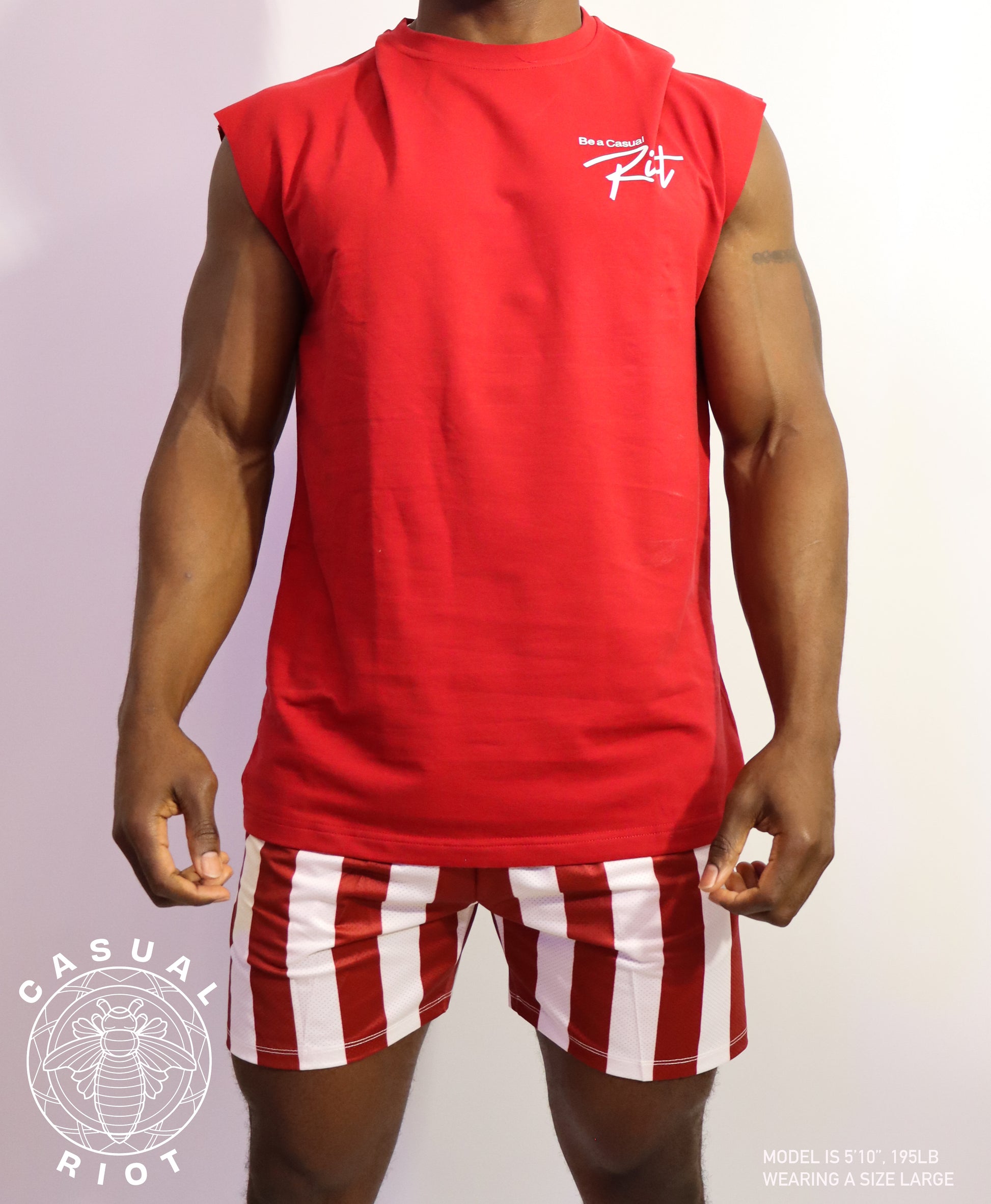 The Casual Riot Sleeveless tee is a high gsm luxury cotton material. With a regular fit and square shoulder, this garment is for all needs. Freedom to move comfortably in your workouts and of a luxury cotton that you can wear for street.