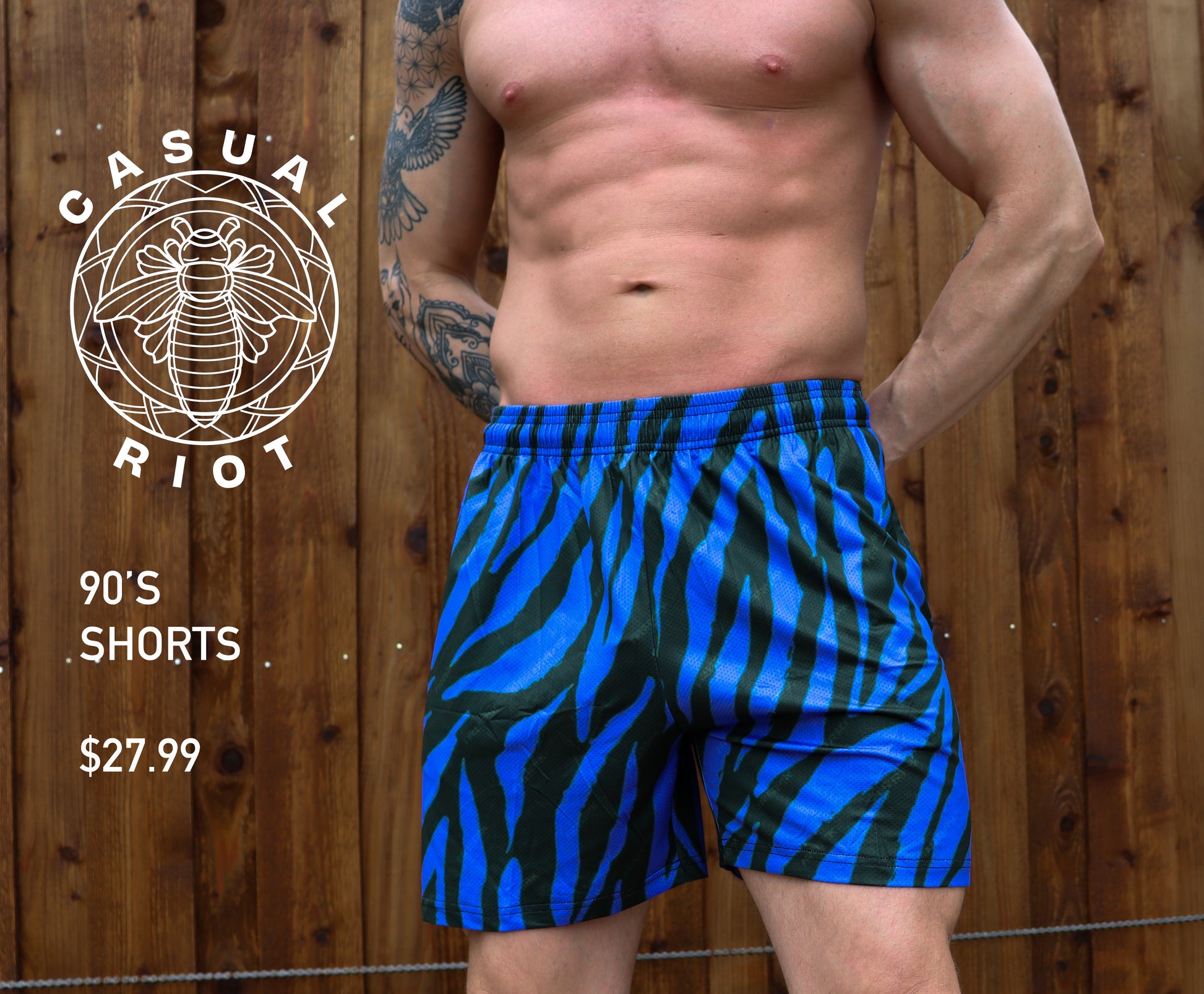 The Icon Shorts are the newest shorts to join the Riot. They can be compared, in fit, to the Basic Mesh Shorts. This mesh is soft, silky and has a comfort waistband. With a 6" inseam, two zipper-equipped front pockets and gold finishes, these shorts are as pleasing to wear as they are to the eye.